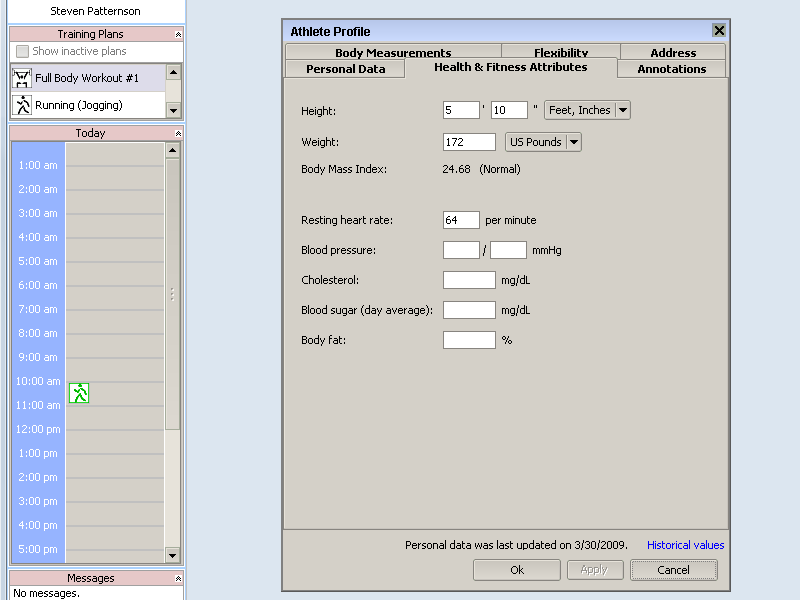 | Many personal fitness-related values can be tracked |