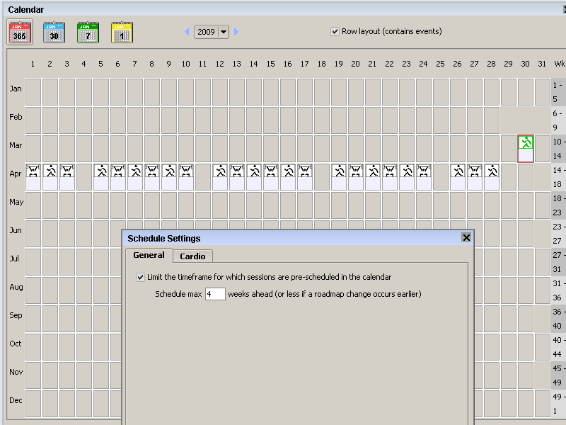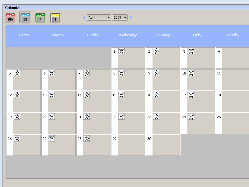 | The calendar year view (row-based) |