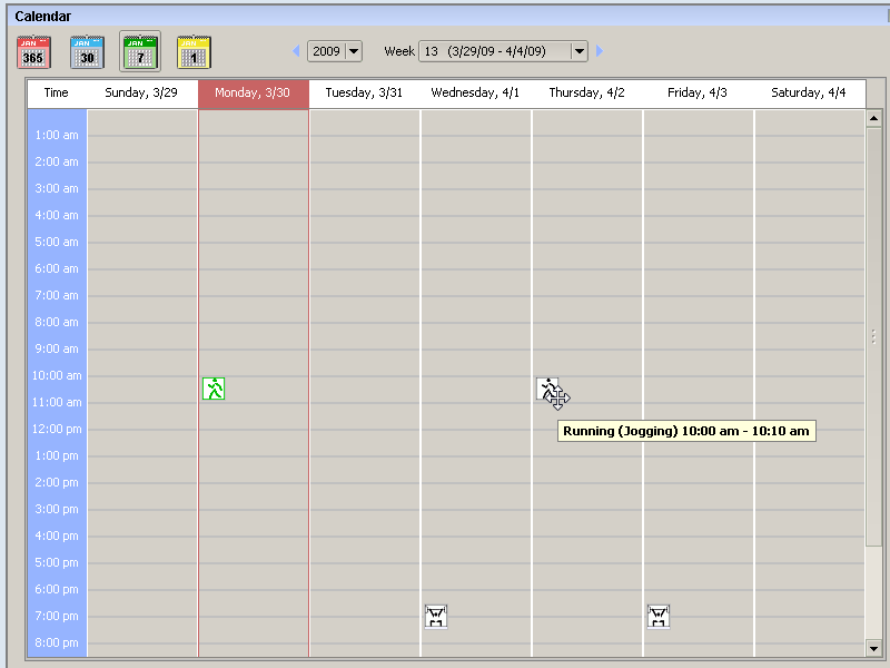 | The calendar week view |
