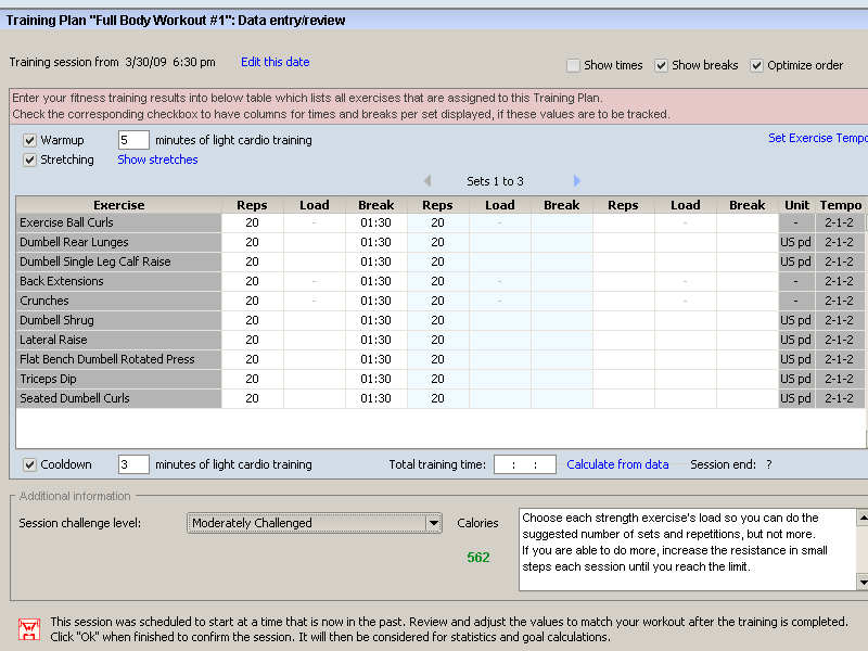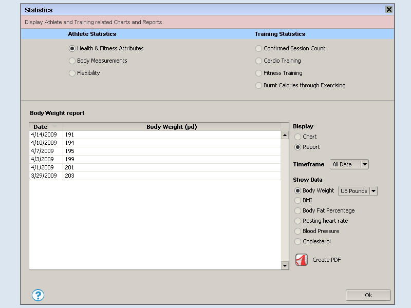 Fitness training results form |