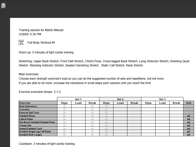 Create pdf documents describing your workouts |