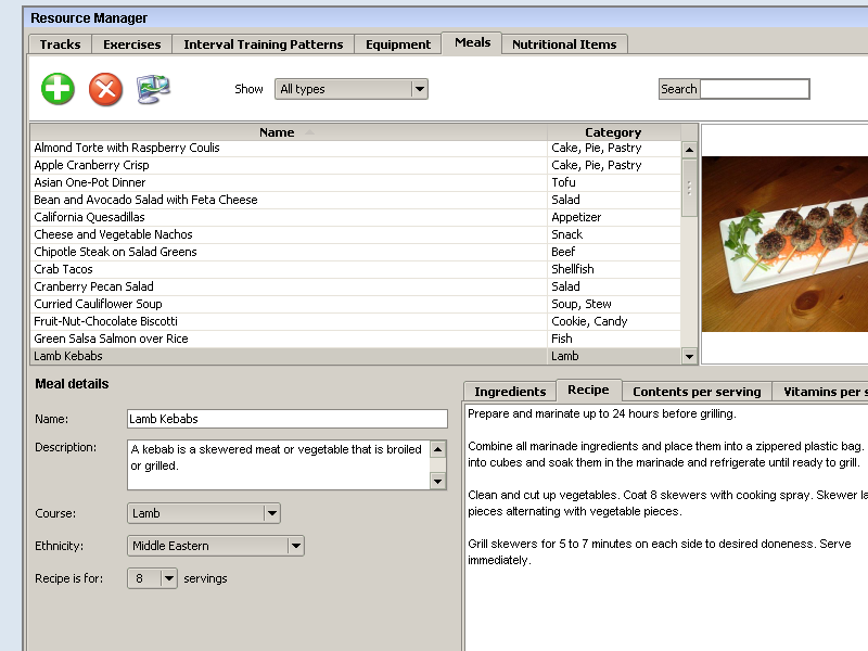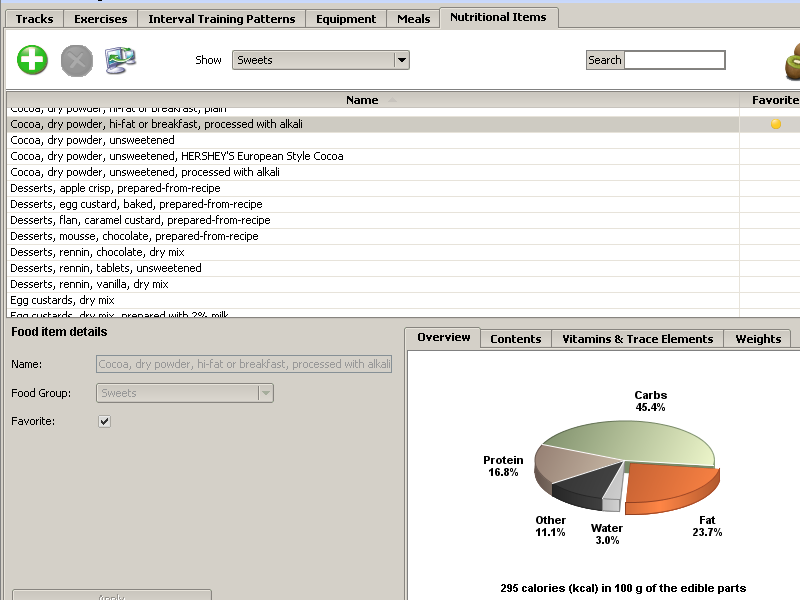 The food database includes nutritional values for each of the items |